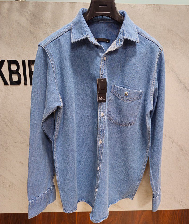 پیراهن آستین بلند جین ضخیم. تک جیب. دوخت ایران. S.KO - کد: ۰۰۹۹۷